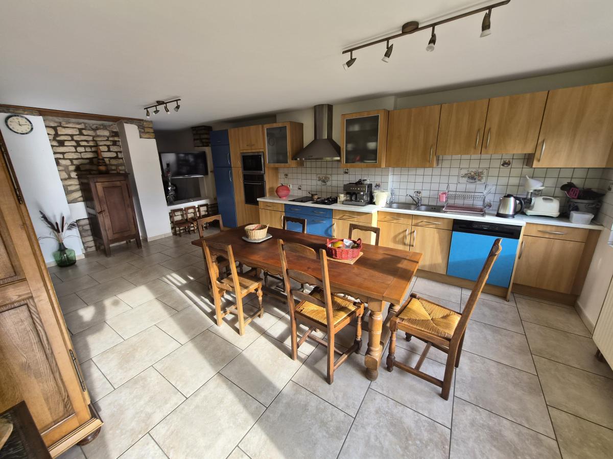 BULLIGNY,- Exclusivité - dans ce joli village des côtes de Toul riche de son histoire et de sa culture viticole, dans un secteur calme et sans passage, belle maison de vigneron T6 rénovée de 200 m² habitables, au cachet authentique préservé comprenant : au rez-de-chaussée, entrée, cuisine équipée avec coin repas et accès terrasse, salon-séjour avec cheminée Lorraine et dégagement escalier, salle à manger, WC, salle d'eau, garage, chaufferie et atelier. (possibilité chambre au RDC)