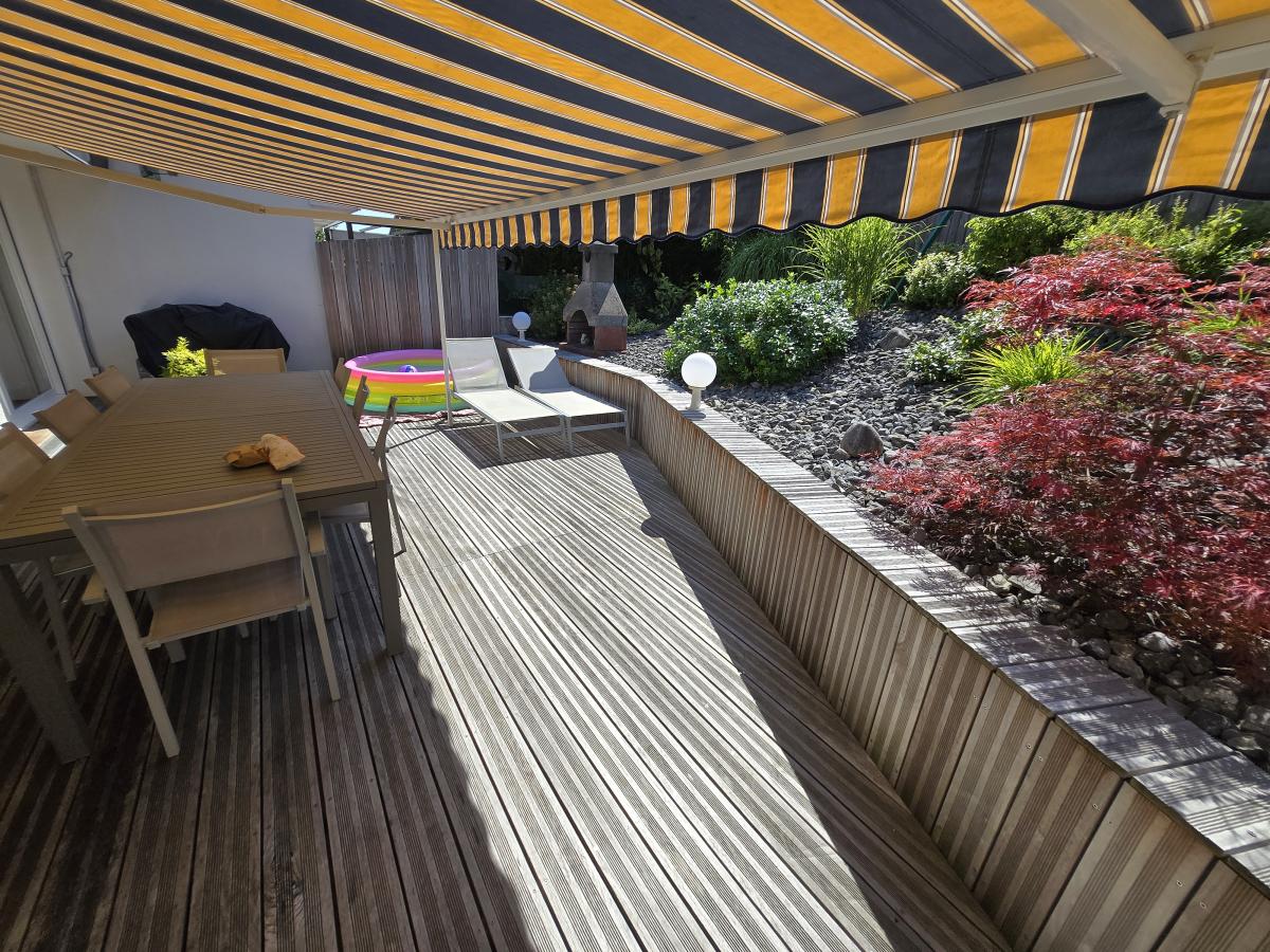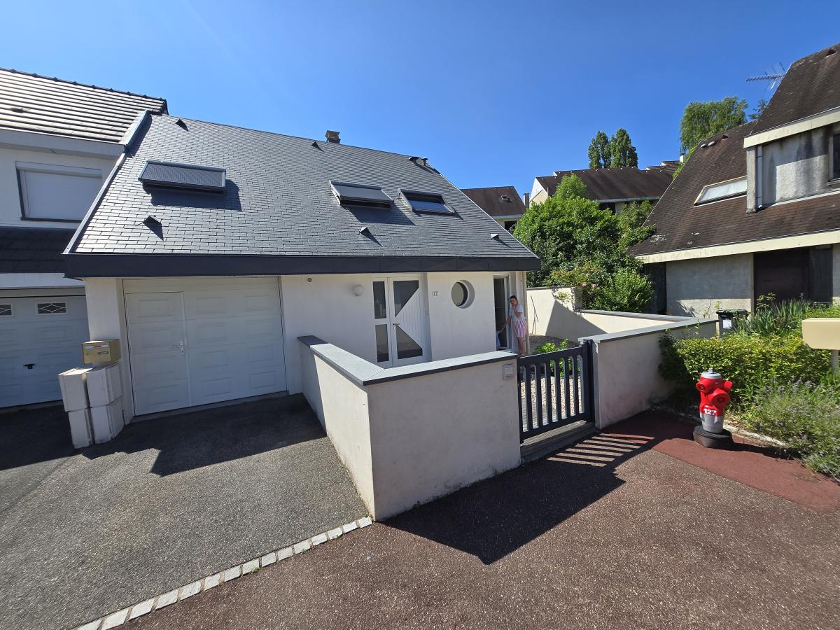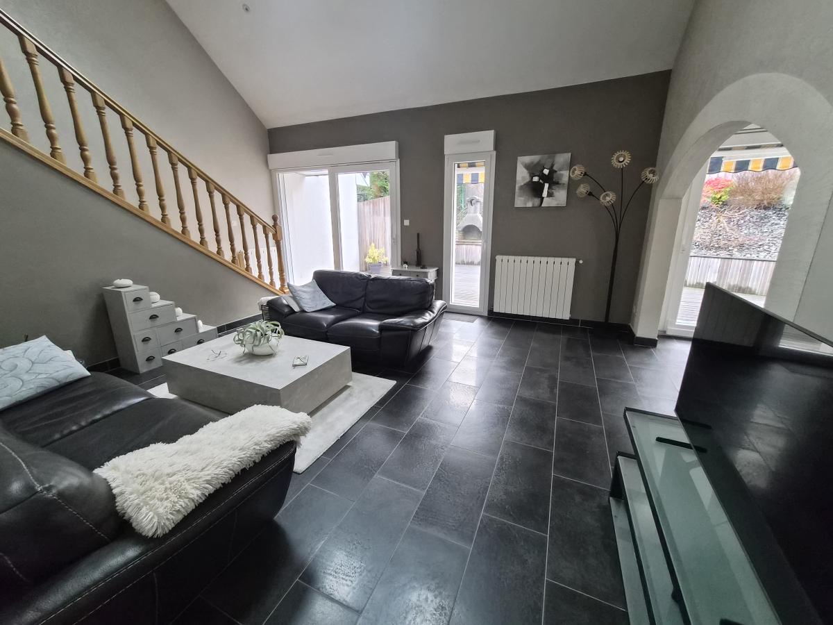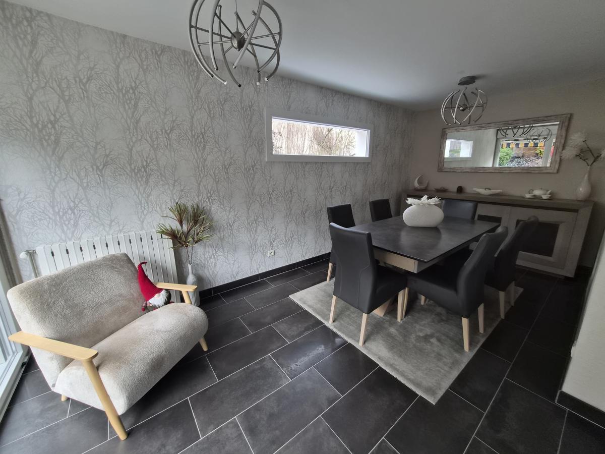 comprenant : Au rez-de-chaussée, hall d'entrée, cuisine équipée avec coin repas et accès terrasse, salon-séjour donnant sur jardin clos et accès terrasse, salle à manger, WC et garage 1 VL.